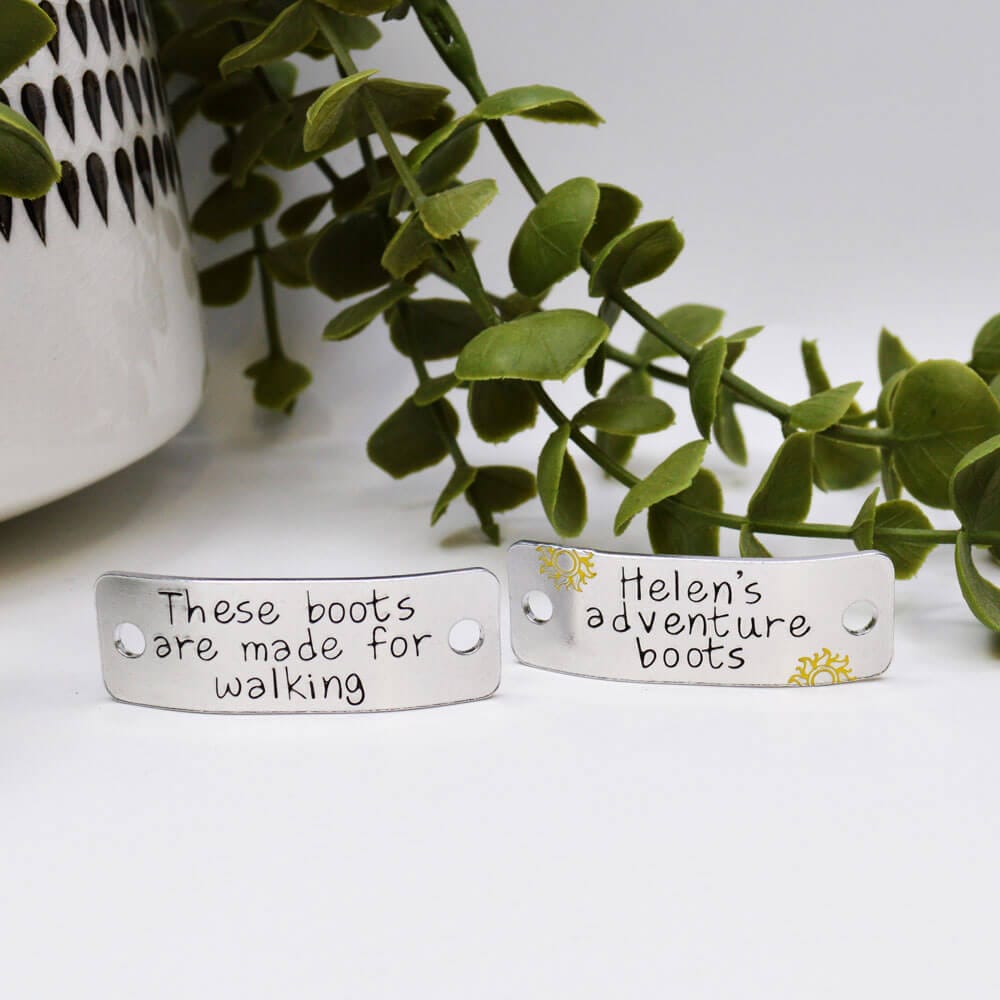 The first is stamped with the classic ‘These boots are made for walking’ to inspire every step, and the second is all yours to personalise! Add a motivational note, mark a milestone, or sneak in a few words of encouragement to cheer them on.