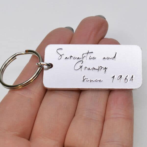 Picture this: you’re strutting through life, keys in hand, and bam! Your Grumpy and Sarcastic Since [Year] Keyring catches the eye of passers-by, sparking conversations and laughs wherever you go. It’s like wearing your personality on your keys!