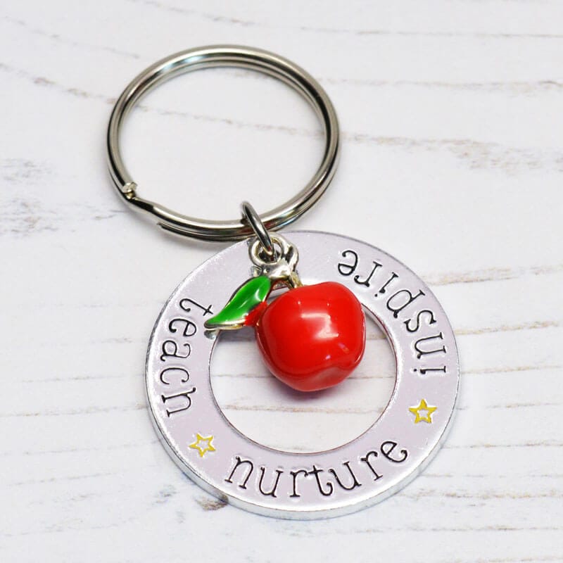 Using an aluminium washer, our ‘Teach Nurture Inspire’ Keyring measures 30mm and comes with a gorgeous 3D apple charm.