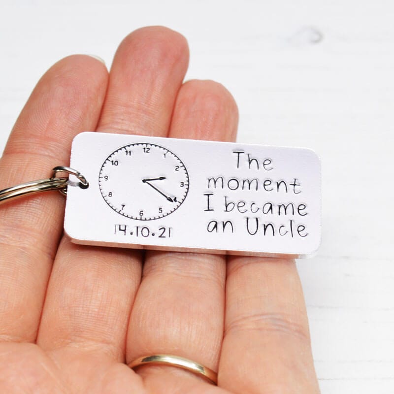 We all know what a huge deal it is when your brother becomes an uncle, right? So why not celebrate this awesome occasion with a personalised keyring that he’ll absolutely love? This keyring is handmade with so much love, featuring a cool analog clock and the date when his life changed forever. It’s the perfect gift for your favorite bro in the whole wide world!
